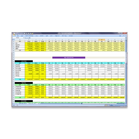 한 개의 서식 파일 안에, 두 개의 워크시트가 있는데, 같은 서식입니다. "(입력)예산짜기" 시트는 즉시 입력해 보실 수 있도록 입력란을 비워둔 시트이고, "(예제)예산짜기" 시트는 작성예를 미리 넣어두었습니다. 참고용입니다.